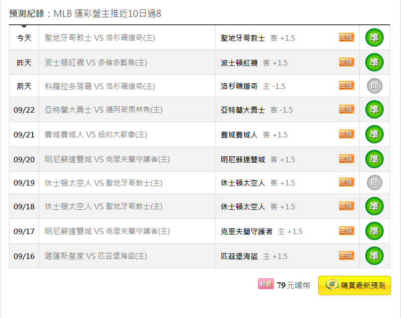 MLB >> 9/26MLB運彩主推近10日過8 勝率80% 今天單場:教士受讓+贏2分勝分差+小分都抓到 特價