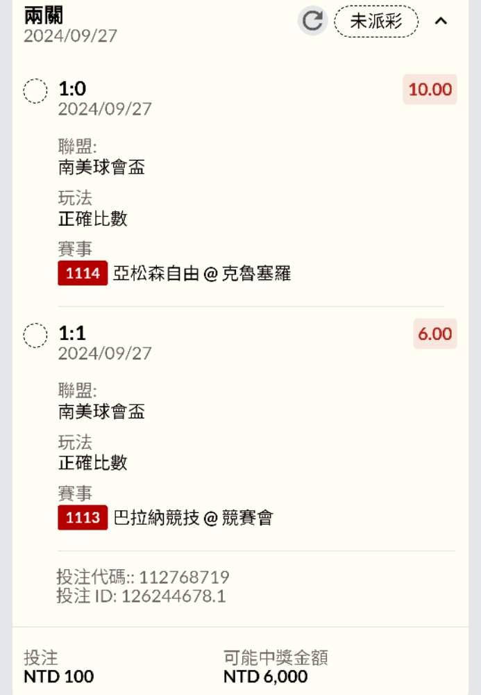 >> 8:30比分二串一樂透單