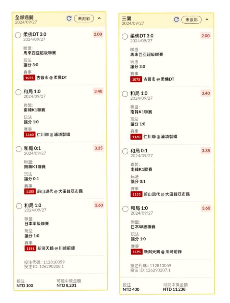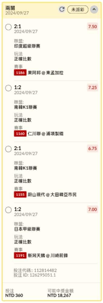 足球 >> 晚場讓分、比數單串關分享3單(比數試單)