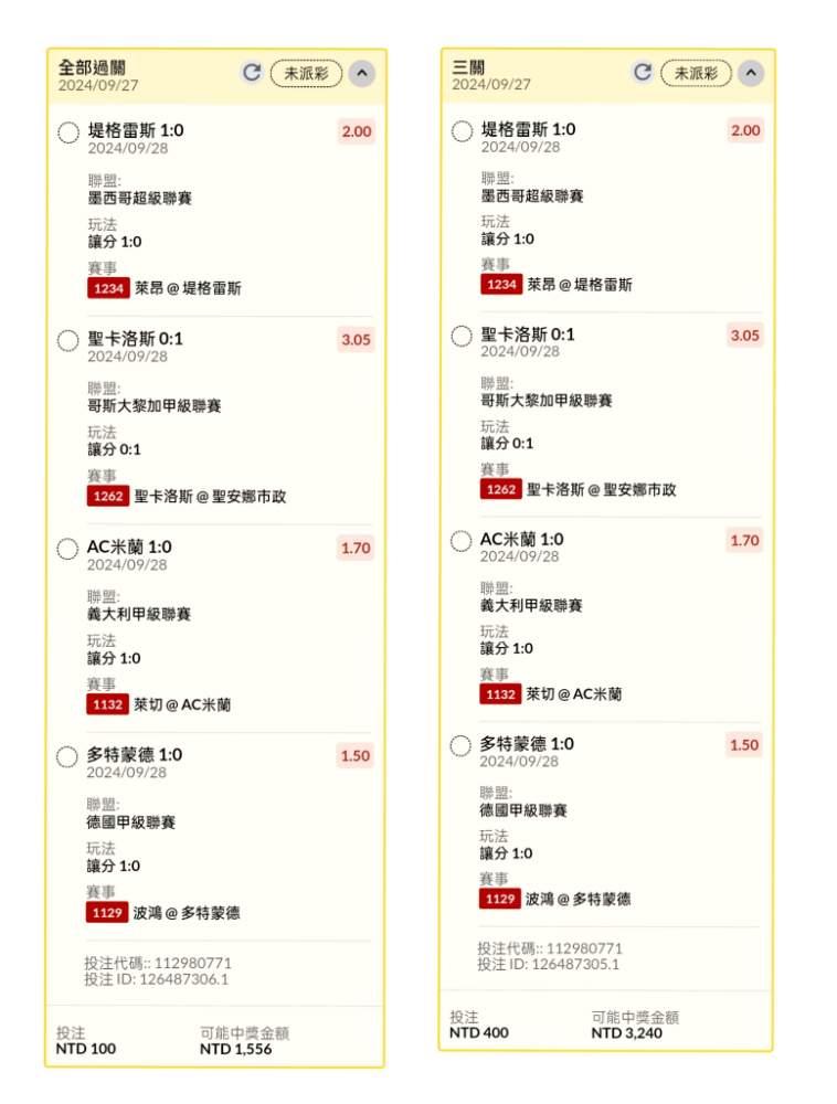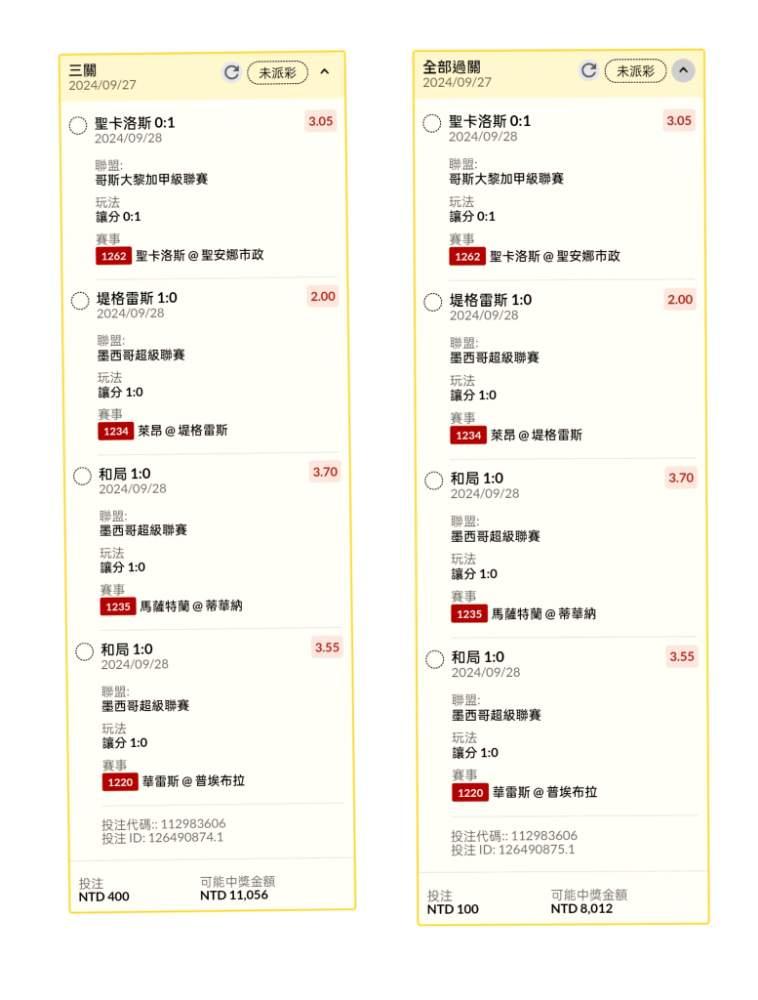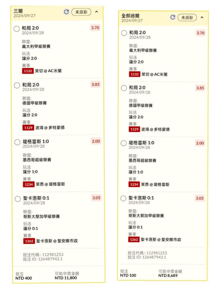 >> 足球半夜早場讓分、樂透單串關分享5單