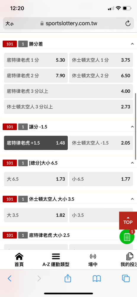 總結:整場推老虎受讓>全場6.5小