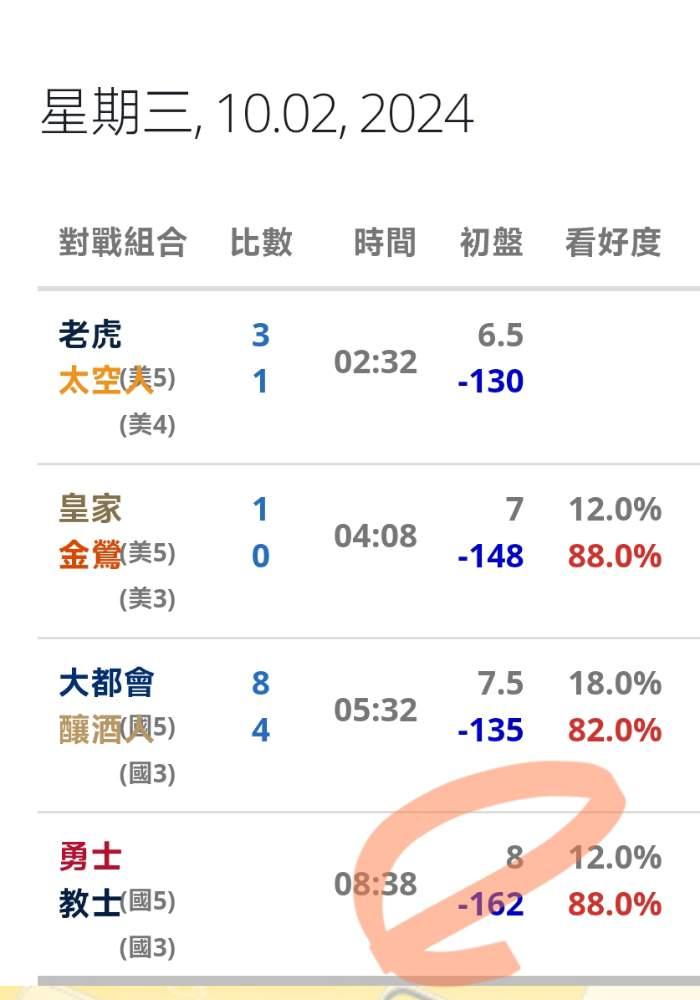 初盤跟第一次變盤 場次的清晰程度 教士場次 優於 太空場次 在優於釀酒場次 最難是金鷹場次 有機會是發勇士 這場 我再考慮一下 |
