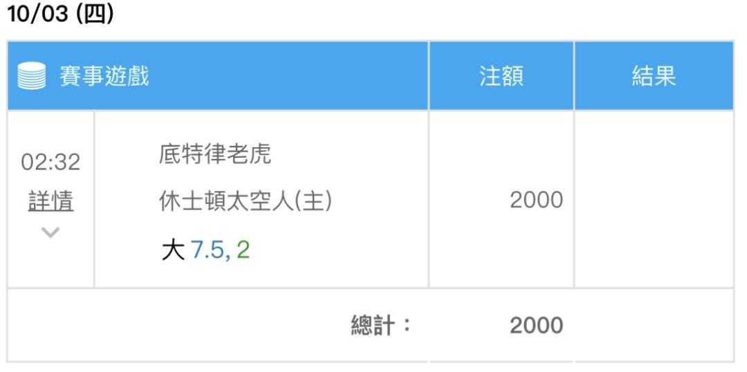 今天不專業分析推薦為早場第一場,太空VS老虎全場大分7-50,原因很簡單,今天攻擊火力坦白講表現在水準之上,但得分效率確很差,經過休息後,相信這些大聯盟球員,特別又是外卡,應該會更積極攻擊,畢竟棒球本來就是得分的比賽,故推薦大分給大家,以上僅供參考,有喜歡在拿去用👍