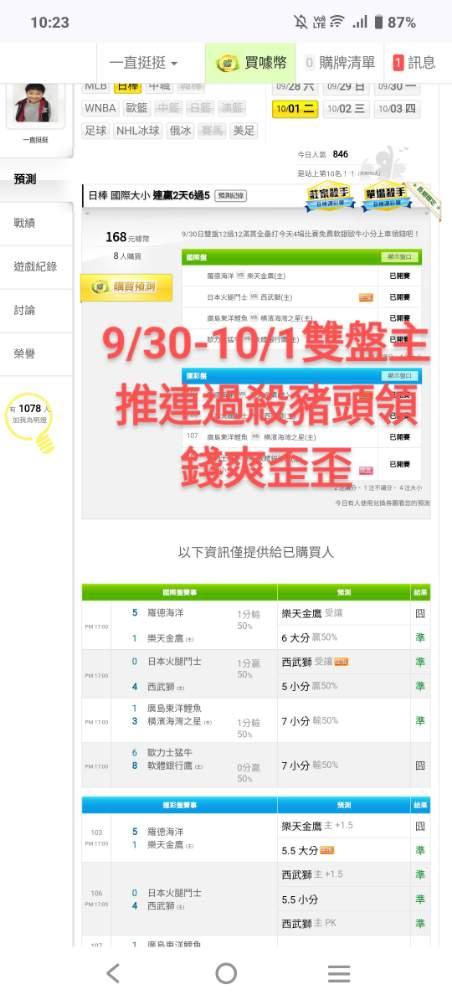日本職棒 >> 10/5國際主推連過4天運彩主推連過2天獲利穩定朋友們上車一起領錢爽歪歪!