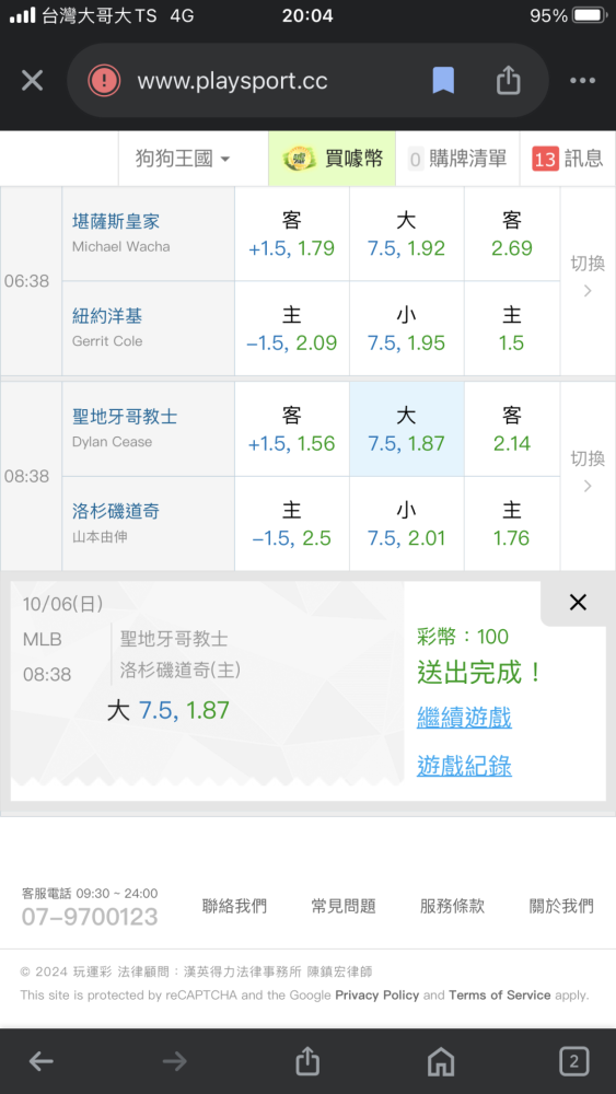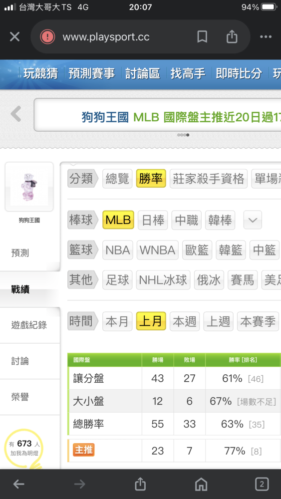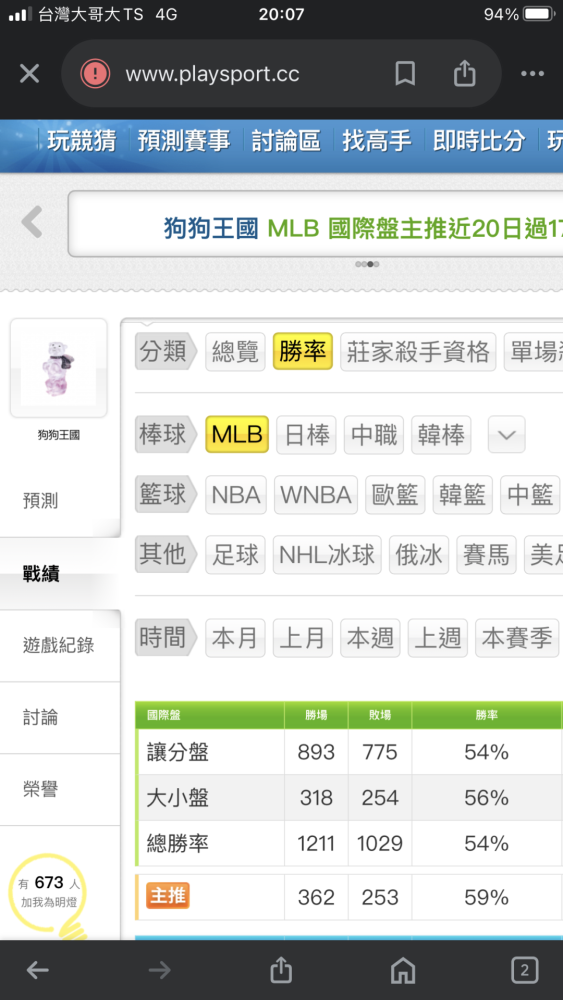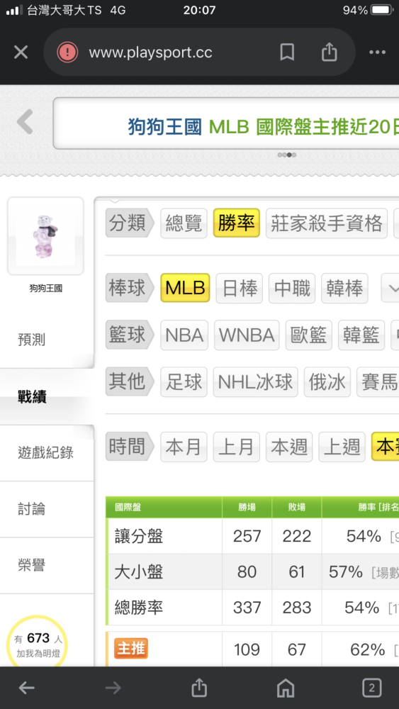 MLB >> 主推近20過17💰💰💰跟上🐶🐶咬莊家國際主推總計高勝率362勝253負