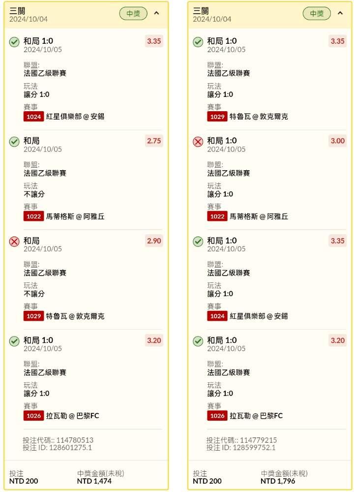過關炫耀 >> 半夜場法乙讓分4過3過2單