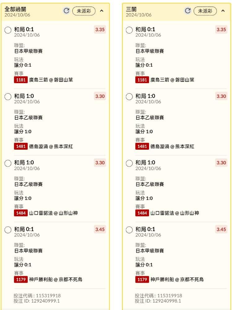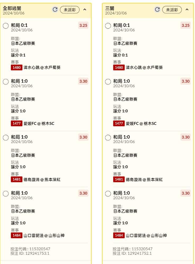 >> 日韓場讓分串關分享5單(1單樂透單)