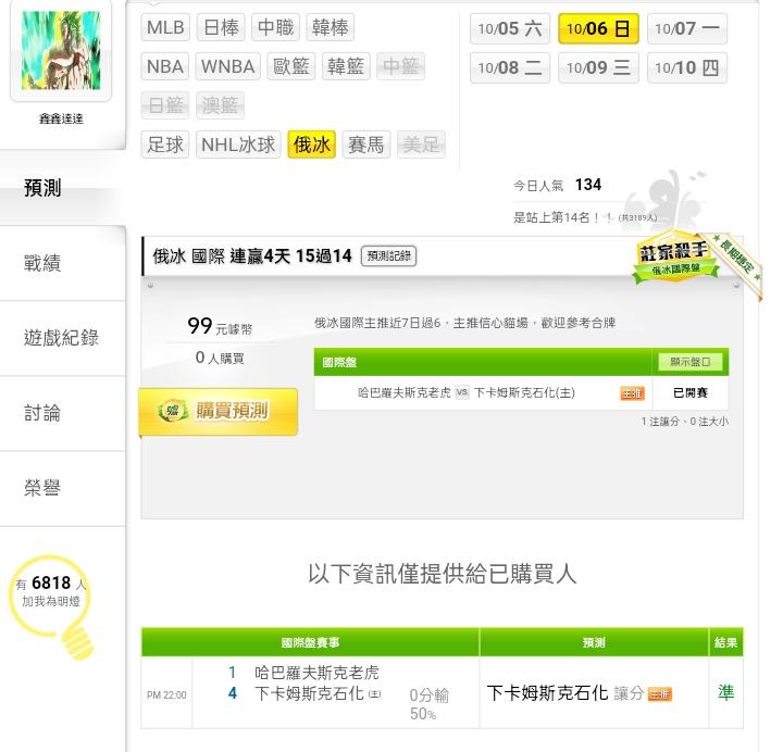 俄羅斯冰球 >> ⭐昨日又3過3全過(連續3天全過),俄冰國際連贏4天15過14,今日定孤支(信心貓場)有信心再贏⭐