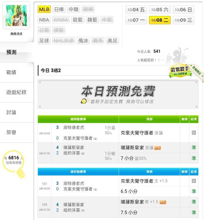 MLB >> ⭐⭐今日3過2,主推連過2天,主推近20日過15勝率高達75%,信心主推(貓場10注)⭐⭐