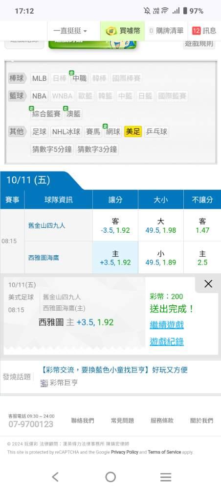 美式足球 >> 主推近7日過6目前連過3盤穩定獲利一注絕殺喜歡上車一起領錢爽歪歪!