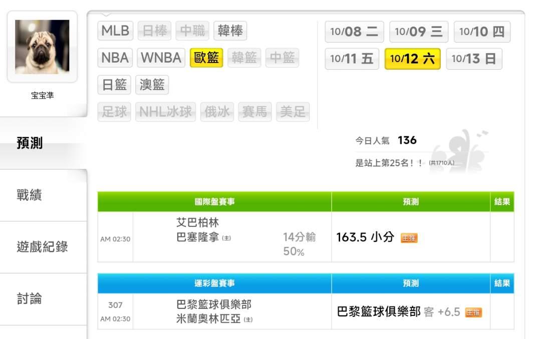 歐洲職籃 >> 歐籃 國際大小 連贏5天12過9,運彩 主推近5日過4,挑戰混五關全過能綠99962$
