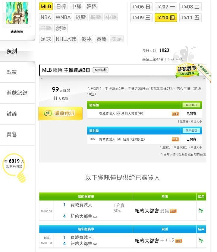 MLB >> ⭐⭐今日主推順利收,MLB國際主推近5日過4,明天只有一場,有信心再贏,主推信心(貓場)⭐⭐