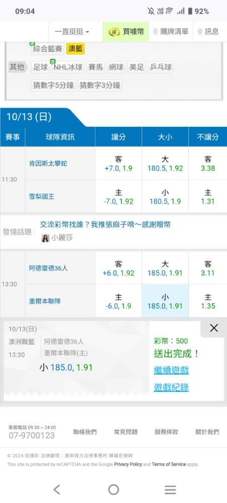 澳洲職籃 >> 國際大小近6日8/7近4日10/8狀況穩定今天1130起二場比賽上車領錢吧!