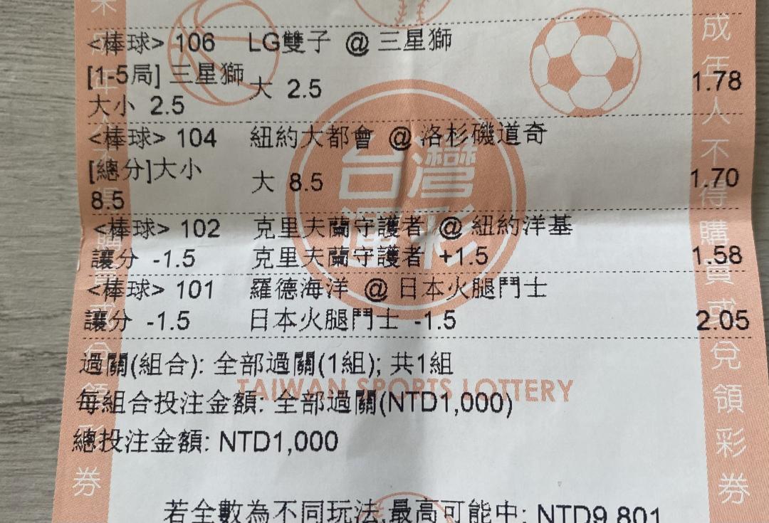 本人看好守護&火腿&愛爾蘭超足賓果 輸贏自負