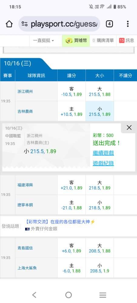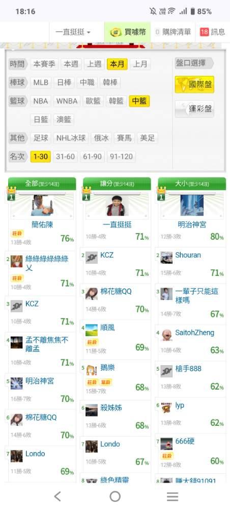 中國職籃 >> 本月國際讓分盤第一名10-4敗喜歡上車一起殺豬吧!