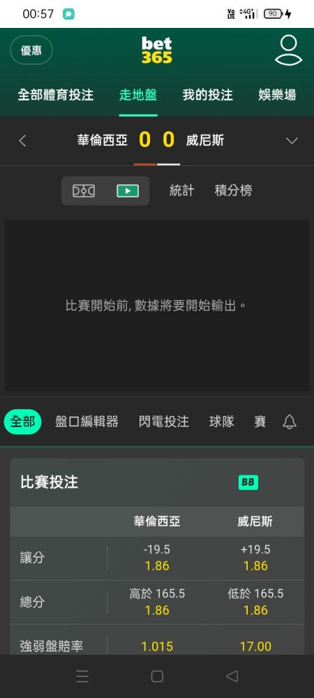 >> 華倫西亞vs威你斯 165.5大 受讓19.5 100倍注