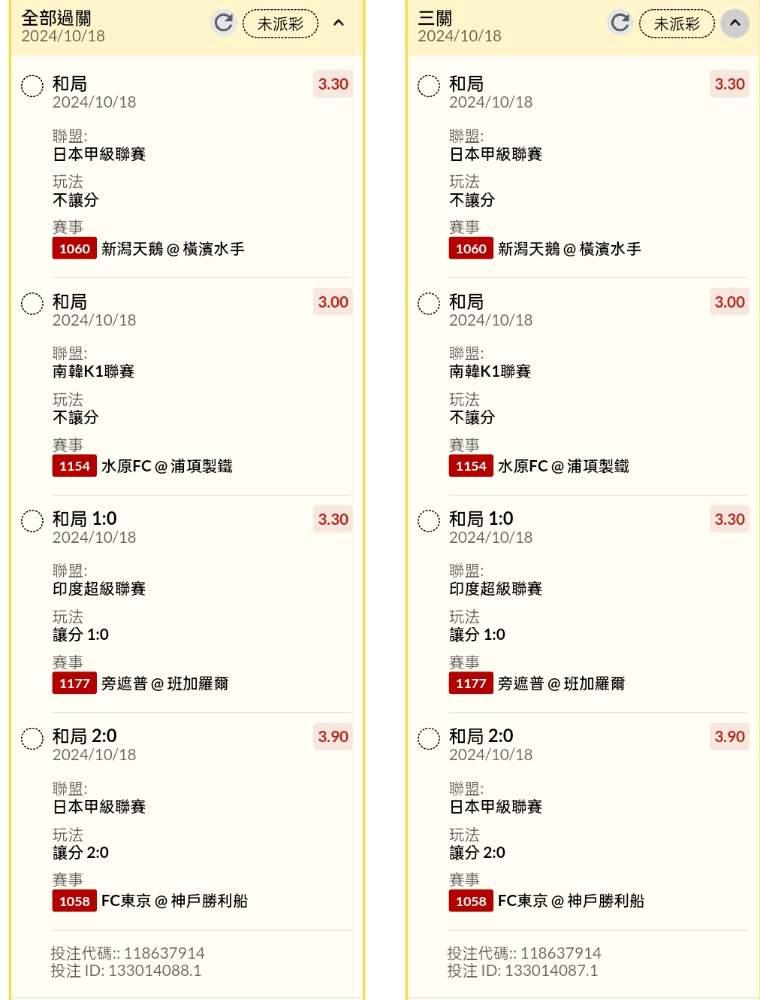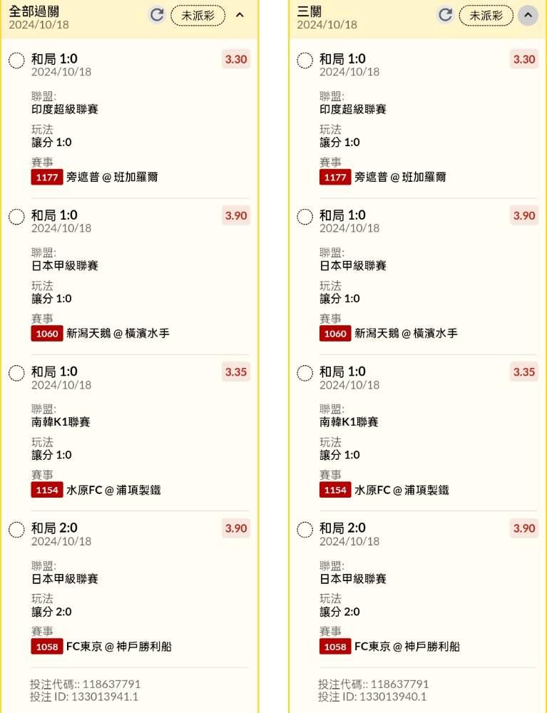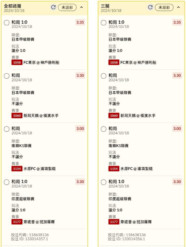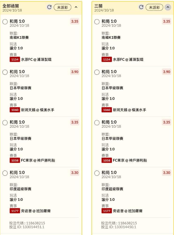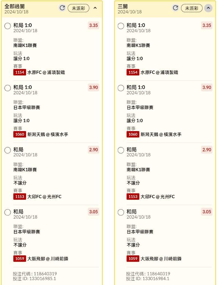 >> 日韓印場小玩讓分串關分享6單試單(不同讓分組合)