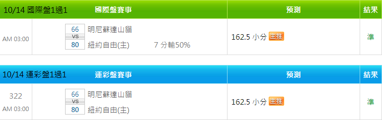 WNBA >> 10/19 WNBA推薦【國際盤主推連過2日】【免費場歡迎參考】【今日特價】
