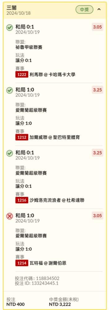 過關炫耀 >> 足球半夜單讓分4過3中32.2倍