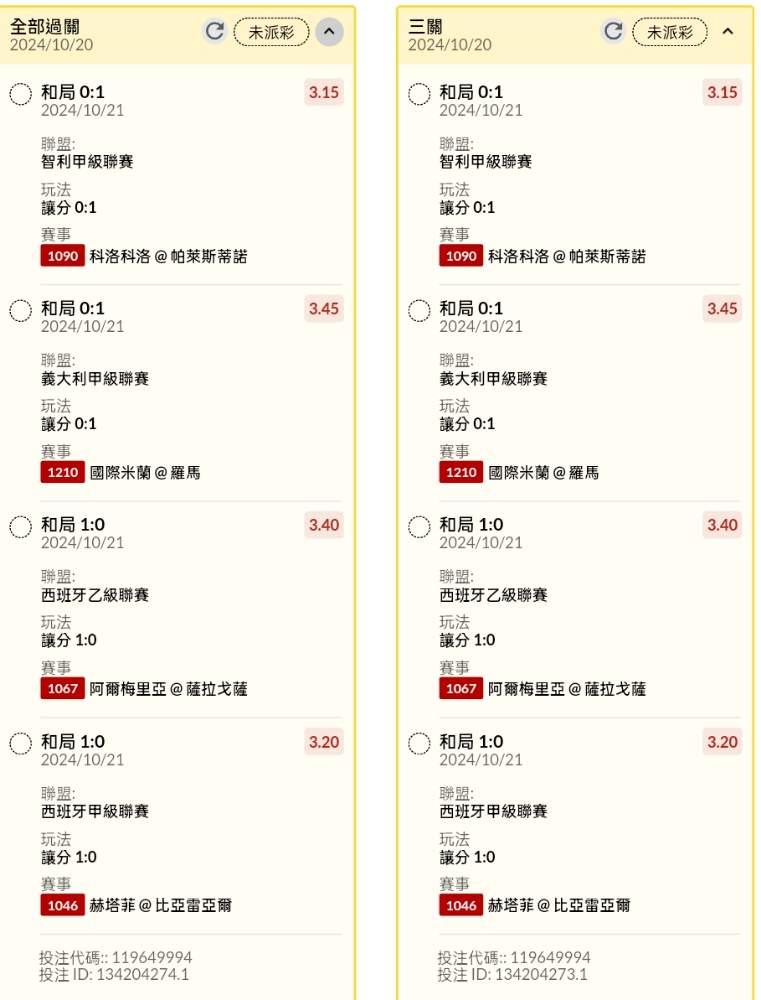 >> 半夜早場讓分串關分享4單