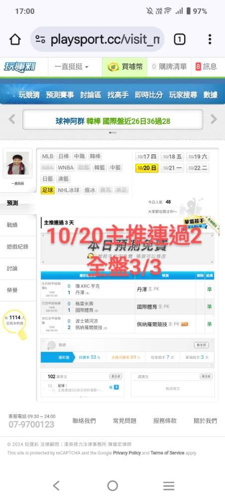 足球 >> 主推連過3天近3天10/9近況超夯獲利成長明天二注一起朋友們上車殺豬領錢!
