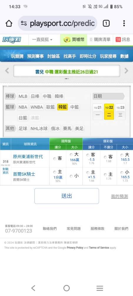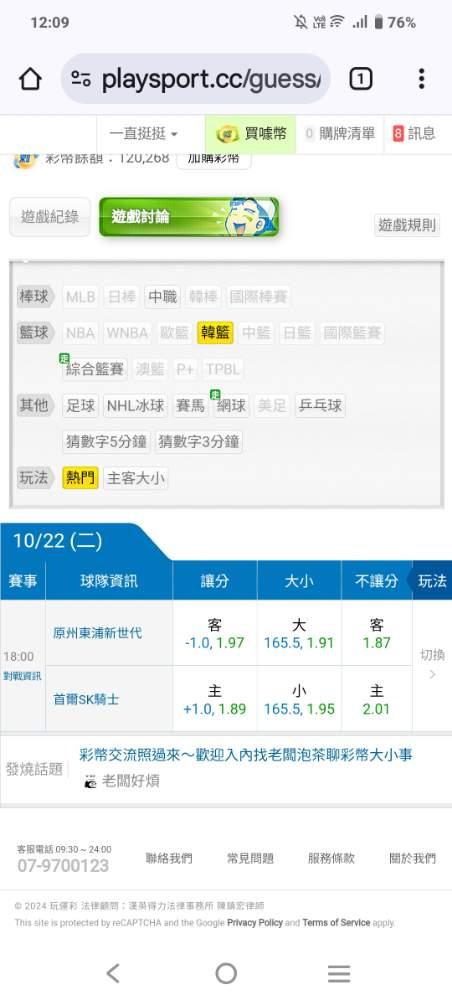 韓國職籃 >> 韓籃盤口參考這場變化!