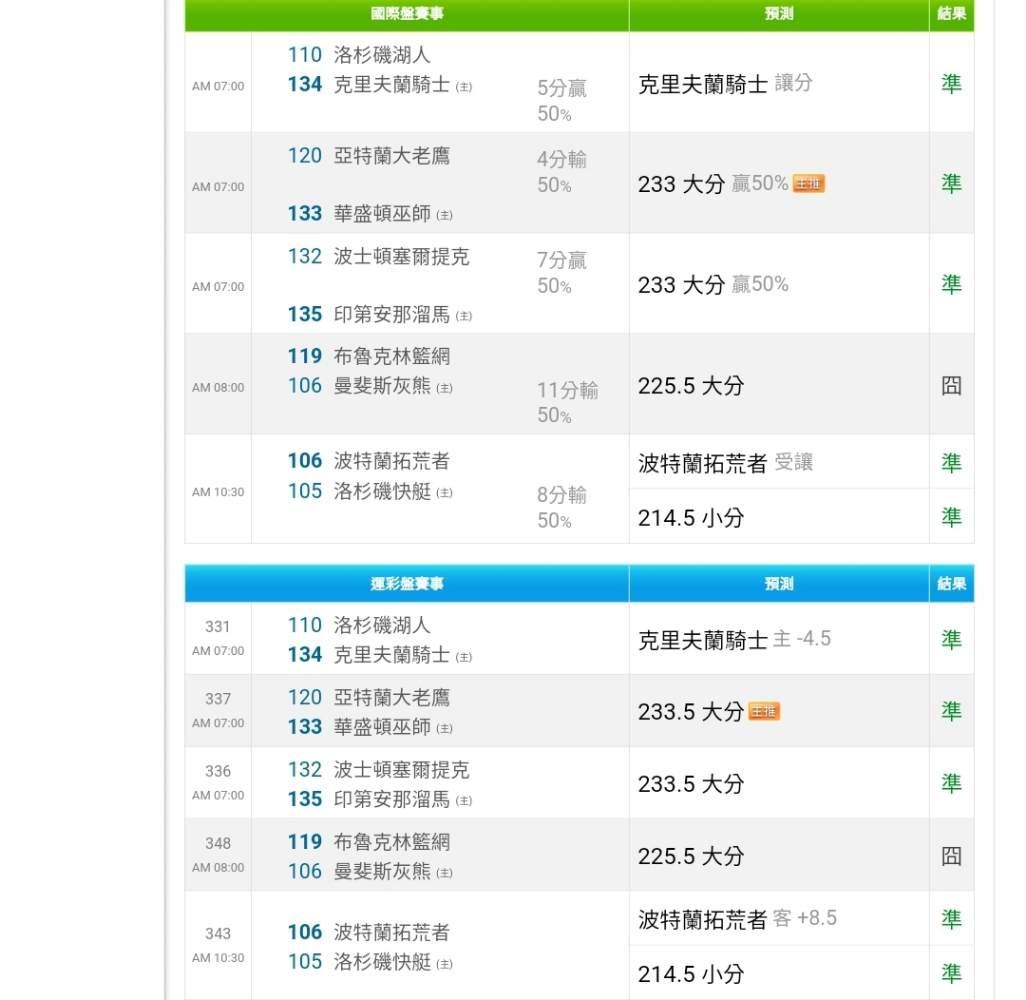 >> 11/01 NBA,今日戰績6-5,成績亮眼!