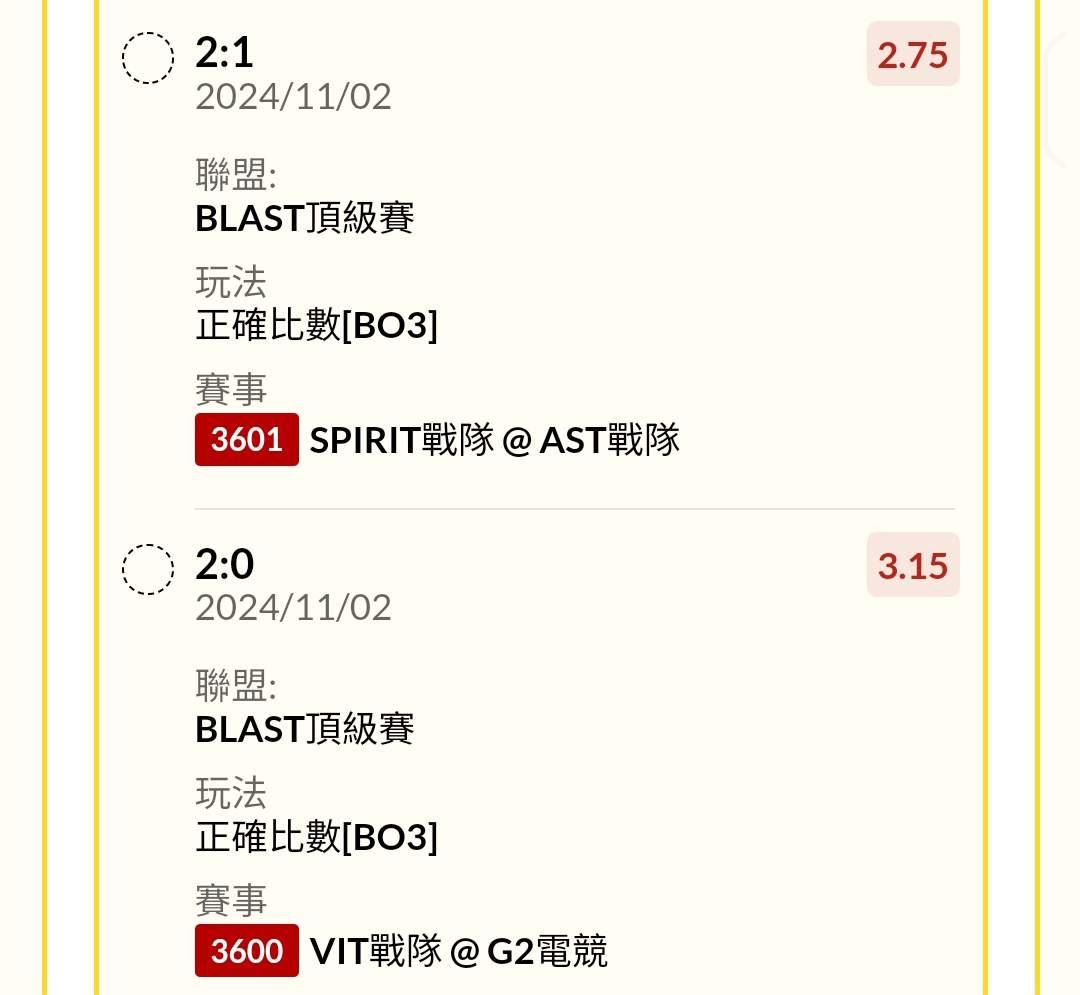 電競 >> 11/2 csgo 16:30 G2 vs VIT 19.30 AST vs spirit