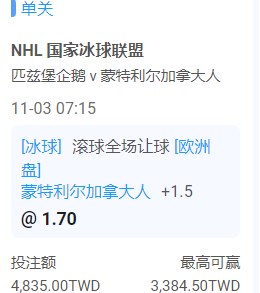 NHL冰球 >> 11/3 NHL分享【主推10連勝】【近5日過17過13】【今日4過3】