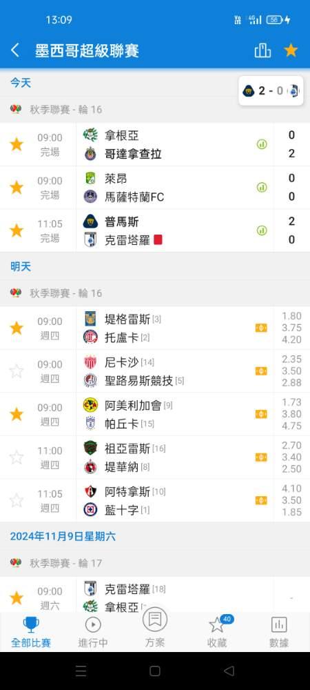 足球 >> 墨超 普馬斯vs克雷塔羅 有推薦的嗎!