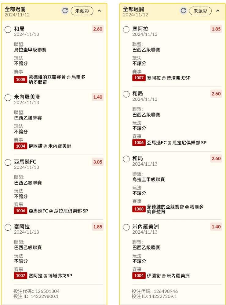 >> 早場讓分不讓分串關分享6單練習小玩試單(不同讓分不讓分組合)