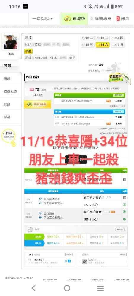 澳洲職籃 >> 今天週日二場比賽很早1130/1330昨天運彩4過3邀請朋友們再度上車殺豬!