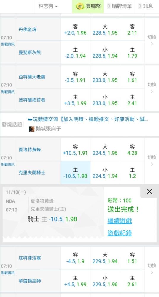免費推薦,騎士讓-10.5分,騎士近況火熱加上主場優勢,明天面對黃峰隊基本上可以輕鬆過盤