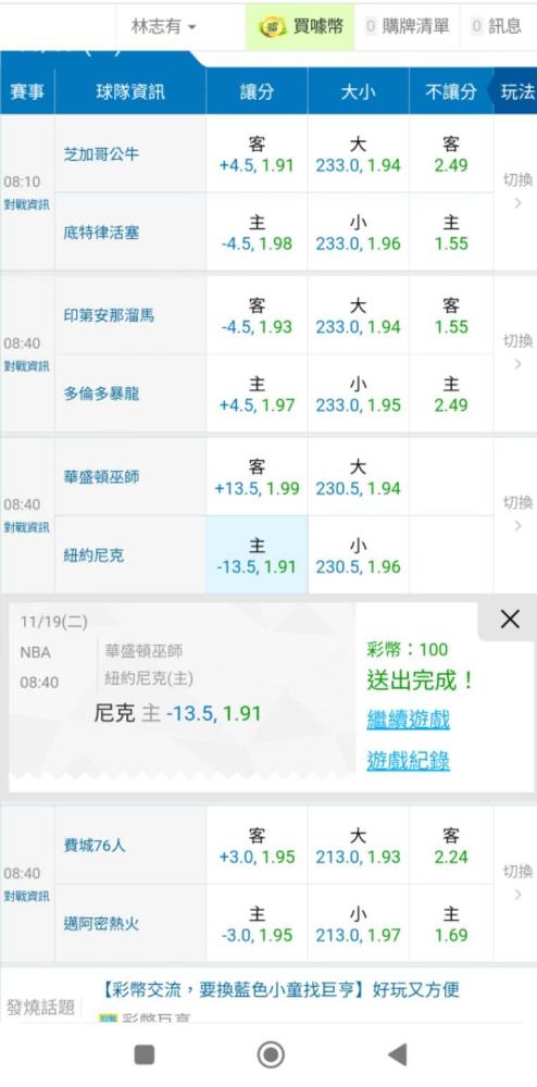 也恭喜昨天有跟到騎士讓分10.5的朋友