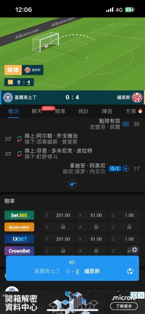 >> 德甲緬恩斯這場抓一個尾球大3.5