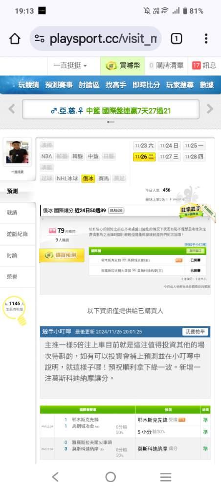 俄羅斯冰球 >> 最近獲利穩定成長今晚三場有喜歡跟上!