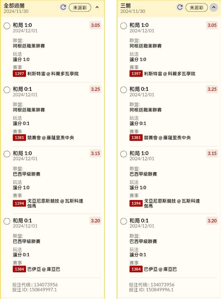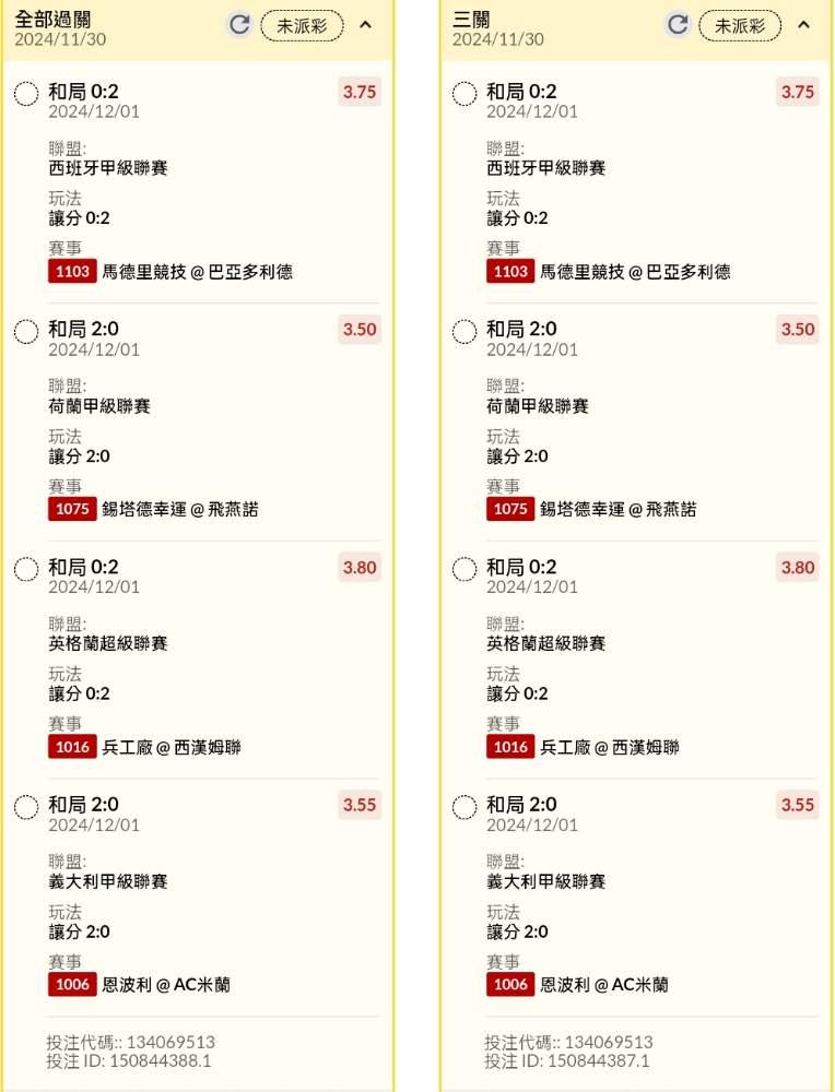 >> 半夜早場讓分串關分享3單