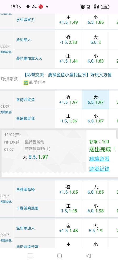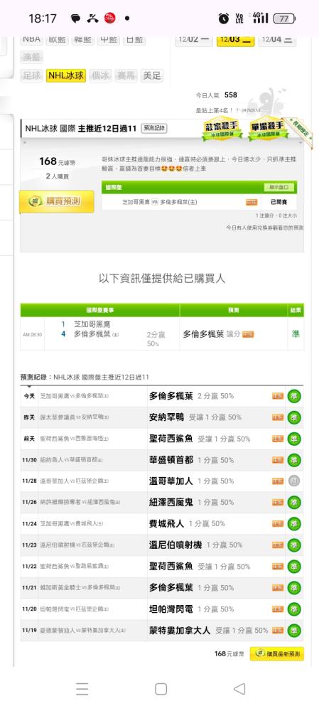 NHL冰球 >> 🤩11注贏10注主推重點場🤩美冰哥妹連龍能力很好,主推連贏中,要贏的不要再猶疑了🤩🤩