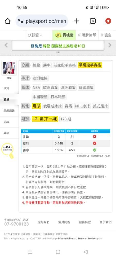 莊殺(評比2個禮拜1次)看你當天點的足球預測盡量能準
