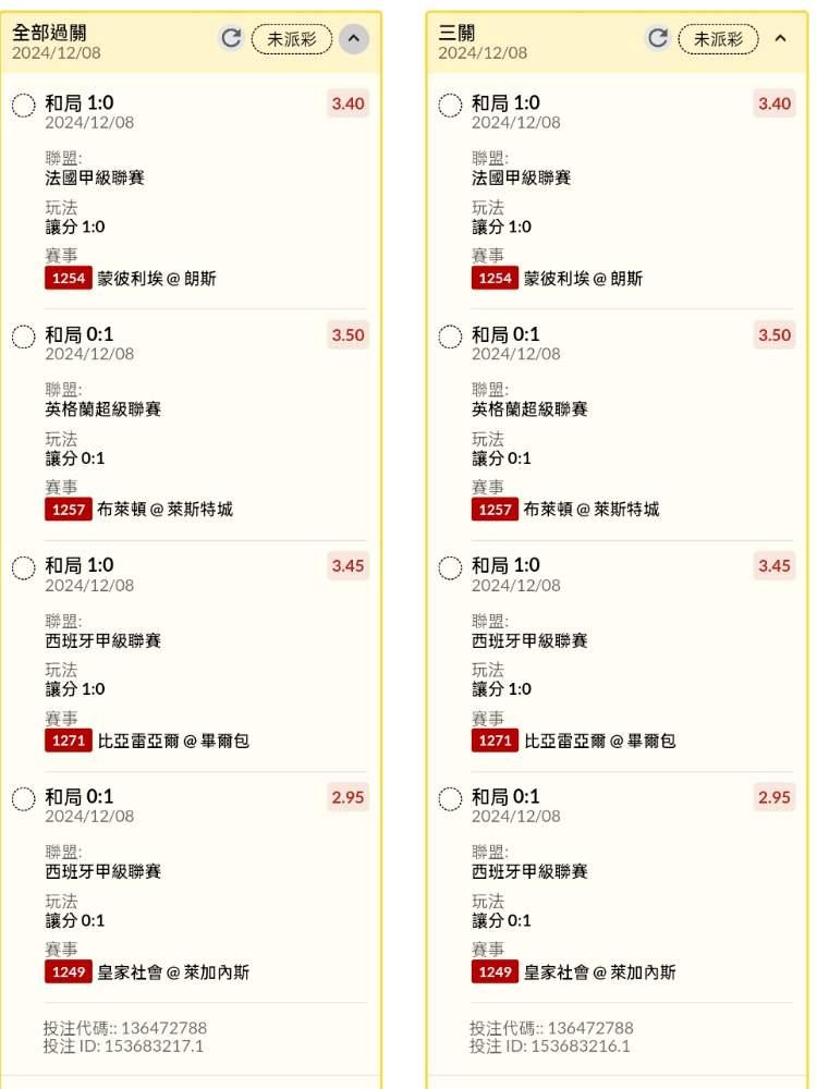 足球 >> 晚場讓分串關分享2單(4場賽事)