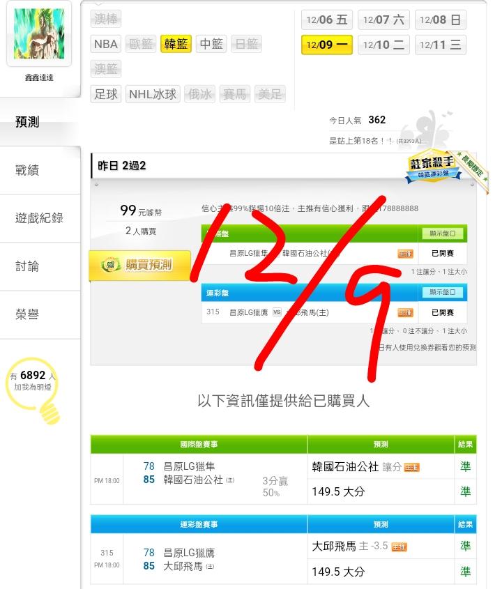 韓國職籃 >> ⭐昨日雙盤4過4全過,韓籃 國際大小 近15日16過13,信心主推99%貓場10注⭐