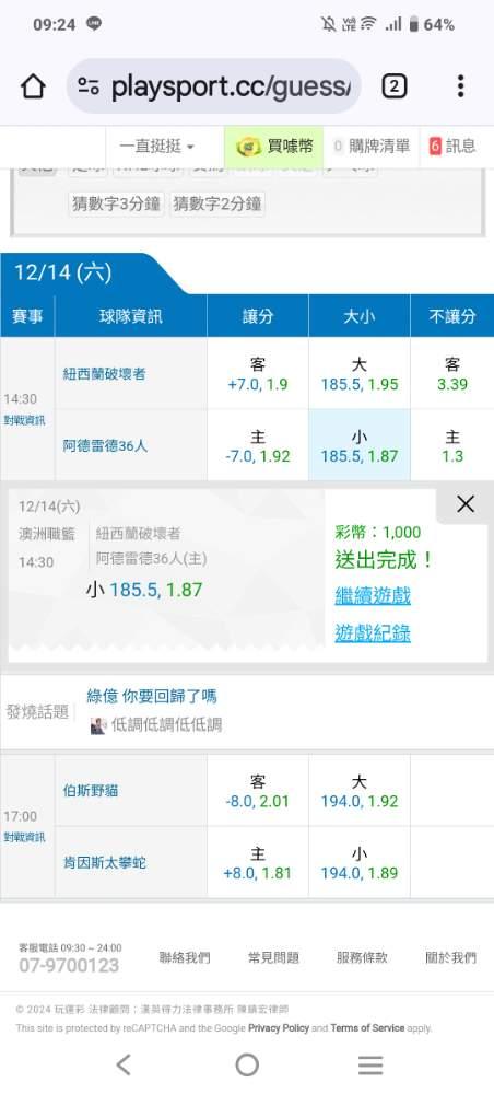 澳洲職籃 >> 狀況回穩12/13日雙盤4過4今天二場比賽邀請朋友們上車一起殺豬頭領錢吧!