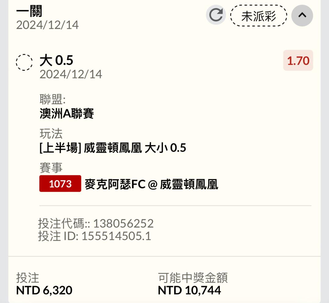 足球 >> [上半場] 威靈頓鳳凰 大 0.5(賽前單誤刪再發一次)
