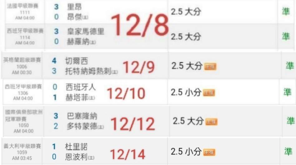 足球 >> ⭐⭐12/16台彩單場2場[00:30德甲+03:00英超]主推信心貓場10倍注⭐⭐