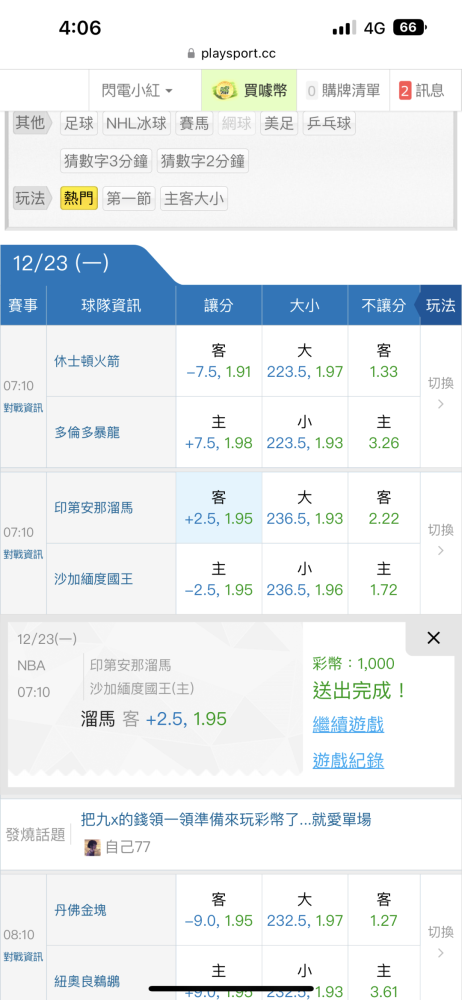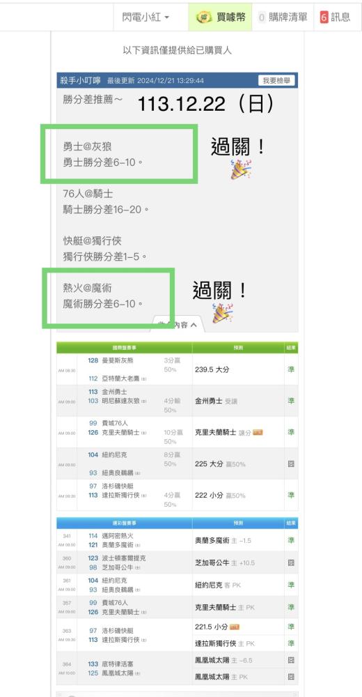 NBA >> NBA火燙🔥國際又贏!國際連贏五天19過14!小叮嚀命中兩場勝分差!明場信心高!特價$79!