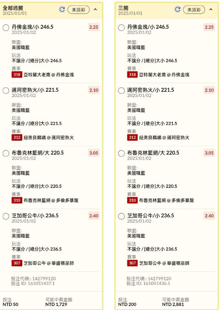 NBA >> 早場串關分享2單試單(試單)
