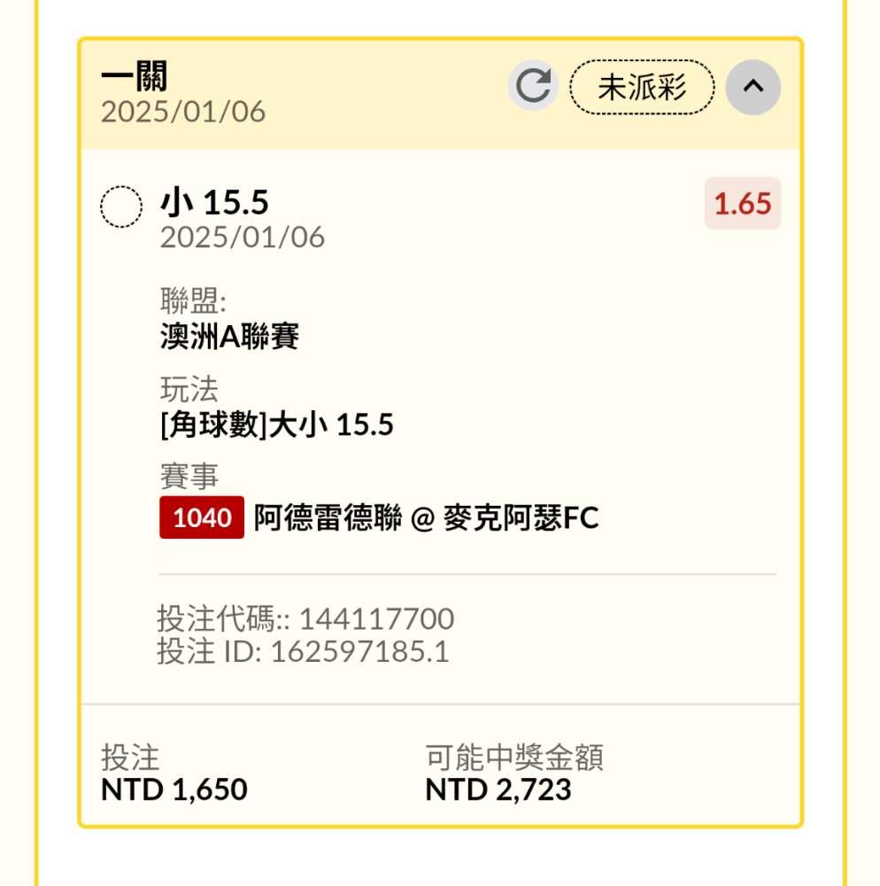 >> 今天澳甲真鬼!角球15.5小收