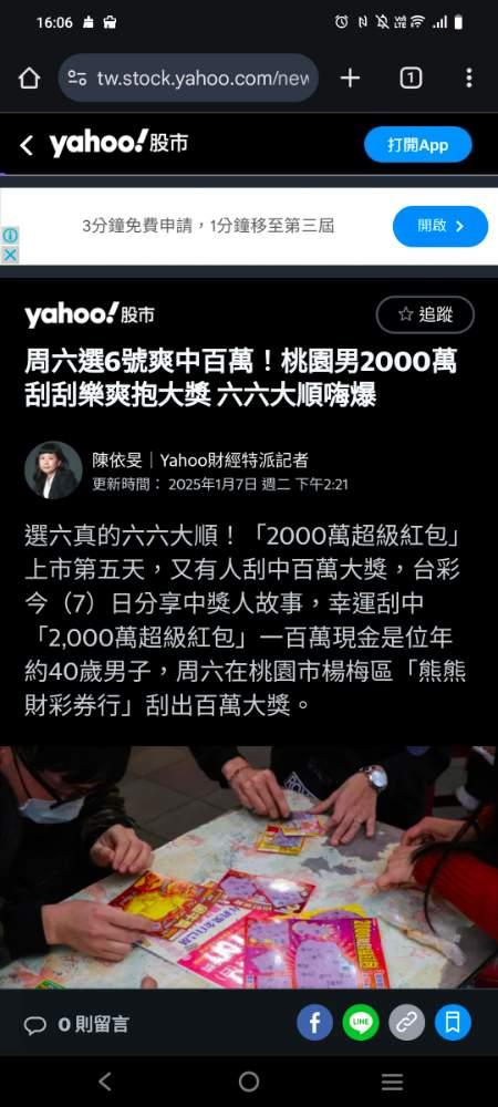 第一步 看到新聞 網路 中大獎新聞 覺得自己也能中
