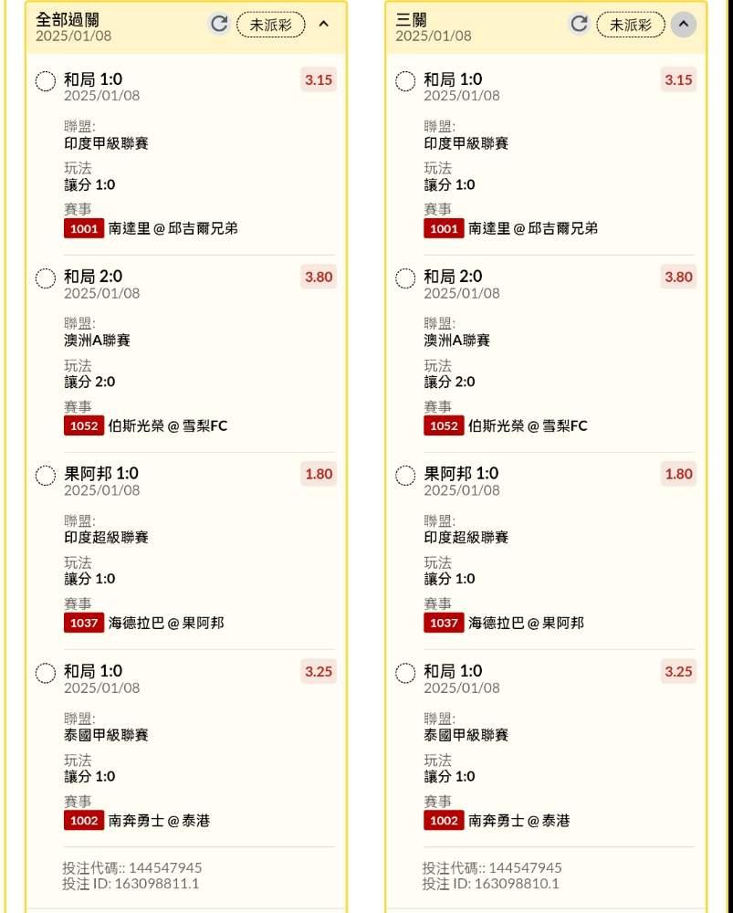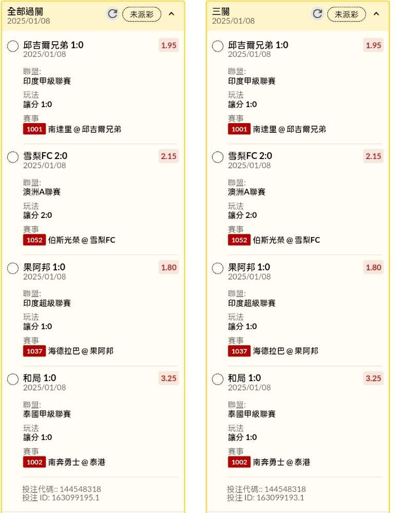 >> 午晚場讓分串關分享2單(4場賽事)