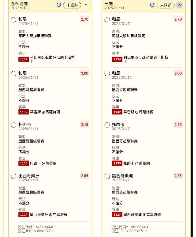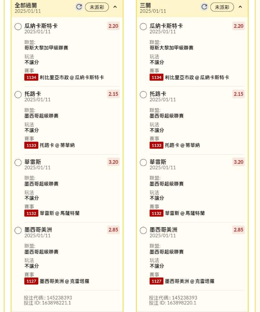 >> 早場不讓分串關分享2單試單(4場賽事)